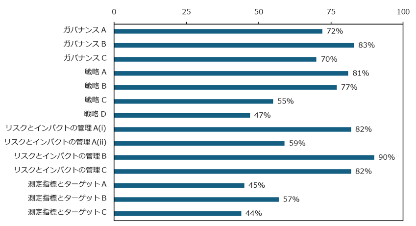 図1 1項目以上に準拠した企業における、開示推奨項目ごとのTNFD準拠報告割合