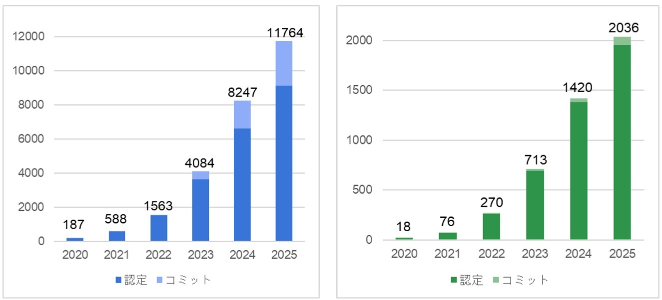 SBTに参加する企業の数は年々増加しており、全世界で見るとSBT認定を取得している企業及びコミットメント(2年以内にSBT認定を取得するという宣言)を行っている企業の合計で、2025年に入り累計1万社を超えました。日本は国別の認定企業数で1位となっており、コミットメントも合わせると2,000社以上が参加しています。