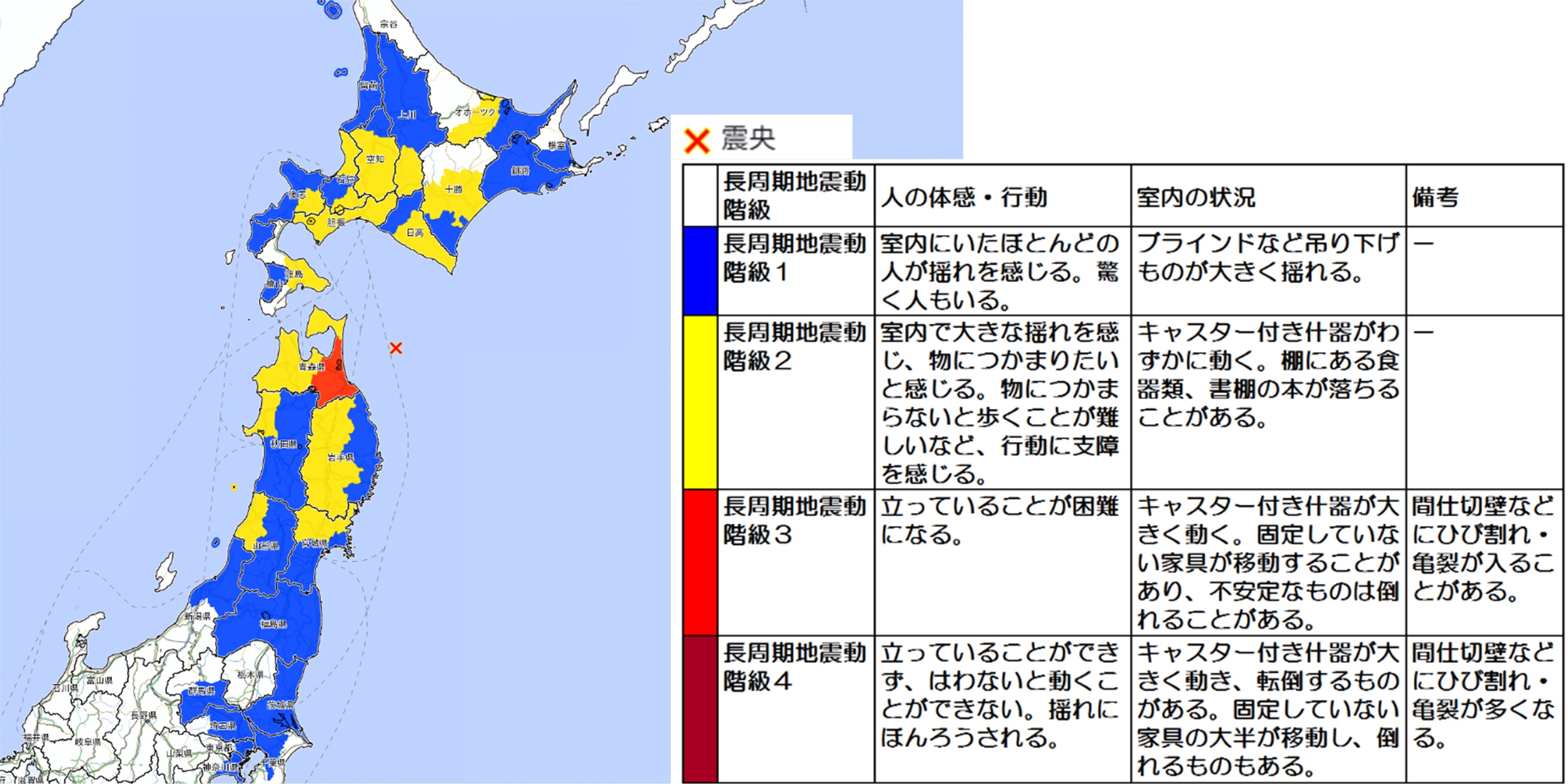 | 最大長周期地震動階級 | 長周期地震動階級3(青森県上北郡六ヶ所村) | |