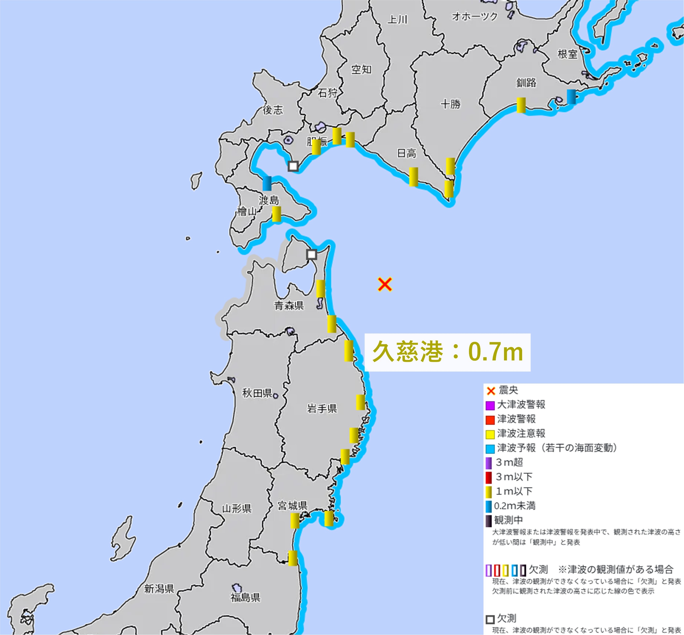 | 最大津波高 | 0.7m(岩手県久慈港) | |