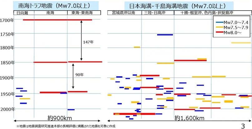 図 6 南海トラフ沿いで発生した地震と日本海溝・千島海溝沿いで発生した地震の履歴(内閣府xviより引用)