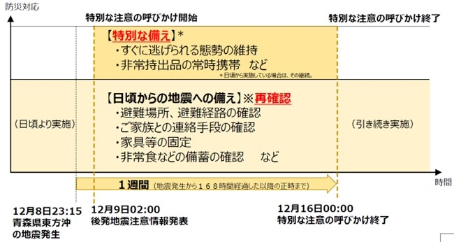 図 7 後発地震注意情報発表に伴う特別な注意(内閣府xvより引用)
