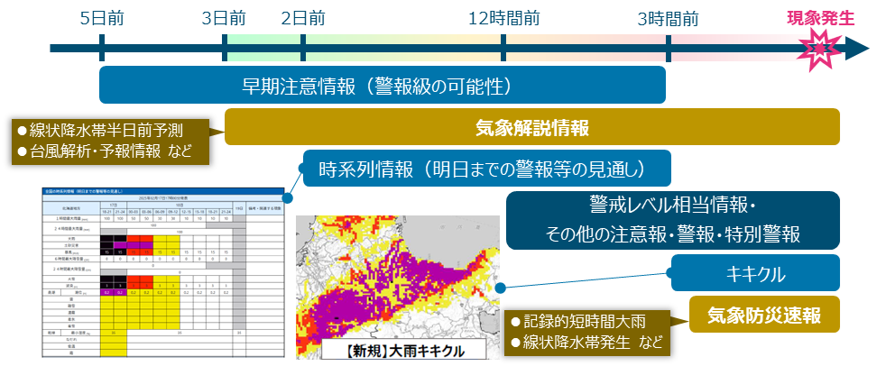 また、新たな防災気象情報のもう一つの特徴は、「段階的に発表される防災気象情報を防災対応の判断に活用」しやすくなった点です。企業の防災対応は一度の判断で完結するものではありません。状況の変化に応じて適切に判断するために、時間軸を意識した情報活用が求められます。