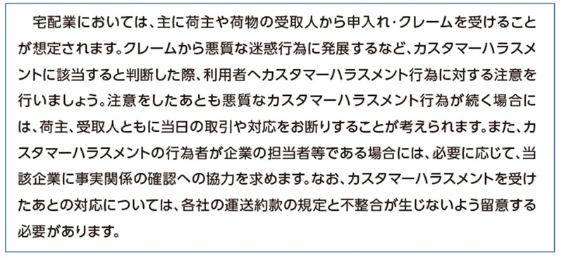 1 厚生労働省「業種別カスタマーハラスメント対策企業マニュアル (宅配業編)等を作成しました」(https://www.mhlw.go.jp/stf/newpage_72028.html)