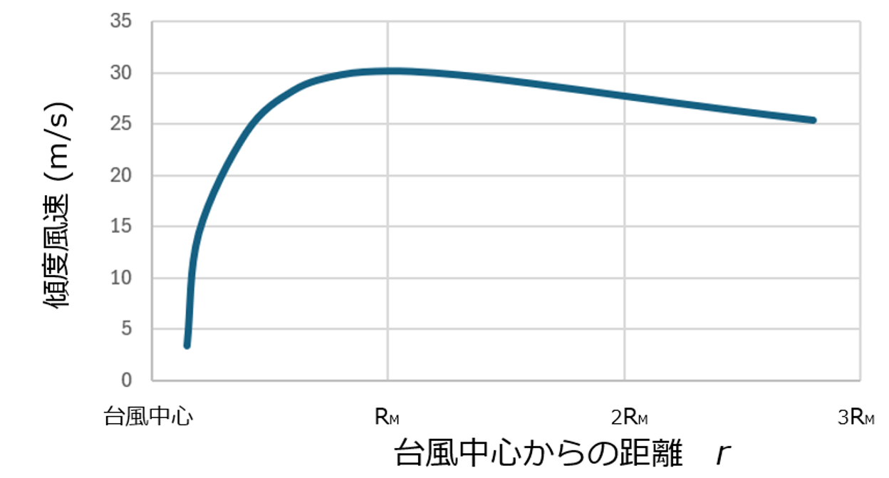 図 5 台風の中心からの距離と傾度風速の関係(1例)(弊社作成)