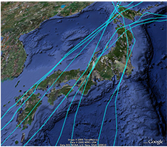 台風による強風がどこにどれくらいの頻度で発生するかを知るためには、過去の台風観測データが重要な情報源となる。過去の台風観測を分析することで、日本各地域にどのような強度の台風が襲来したかを把握できる。しかしながら、人工衛星による気象観測が始まってからまだ50年程度であるため、台風を確率的に評価するには観測事例が不十分である。